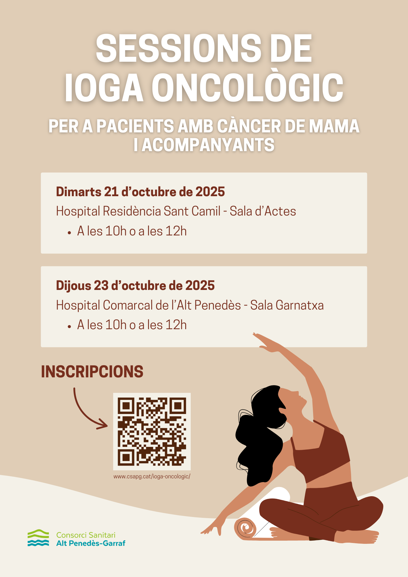 La Unitat de Patologia Mamària del Consorci Sanitari Alt Penedès-Garraf (CSAPG) posa en marxa unes sessions de ioga dirigides a pacients amb càncer de mama i acompanyants. Aquesta iniciativa s'impulsa amb motiu del Dia Mundial contra el Càncer de Mama, que es commemora el 19 d'octubre.