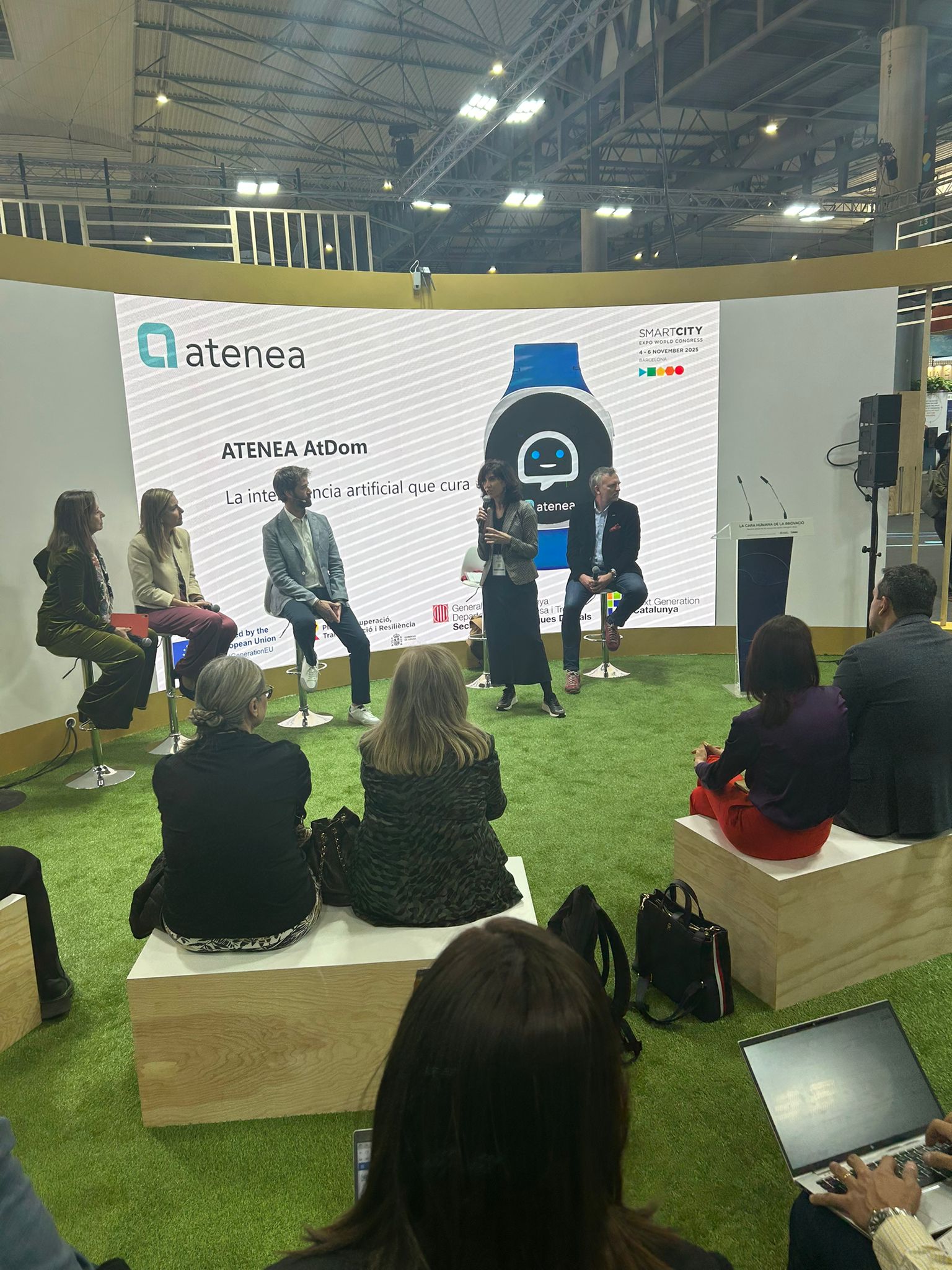 Atenea AtDom, presentat aquesta setmana a l'Smart City Expo World Congress i desenvolupat per Momentum Analytics, en col·laboració amb l'ONG Associació Benestar i Desenvolupament (ABD), forma part de la segona fase del projecte Atenea, finançat amb 2,6 milions d'euros de fons europeus. El projecte representa un pas endavant en l'ús de la intel·ligència artificial per millorar l'atenció a la gent gran i a persones amb necessitats especials dins l'àmbit del CSAPG.