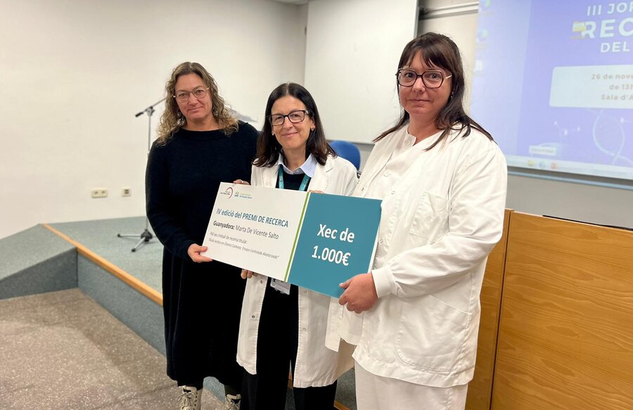 Un dels moments més destacats de la jornada ha estat el lliurament del guardó del Premi de Recerca del CSAPG, que reconeix la innovació i la qualitat dels projectes desenvolupats pels professionals de l'entitat. En aquesta edició, el premi s'ha atorgat al projecte "Àcid acètic en úlceres cutànies", liderat per Marta de Vicente, infermera del CSAPG. Les encarregades d'entregar el premi han estat Olga Farré, gerent del CSAPG, i Neus Canet, gerent de la Fundació Sant Antoni Abat, entitat patrocinadora del premi.