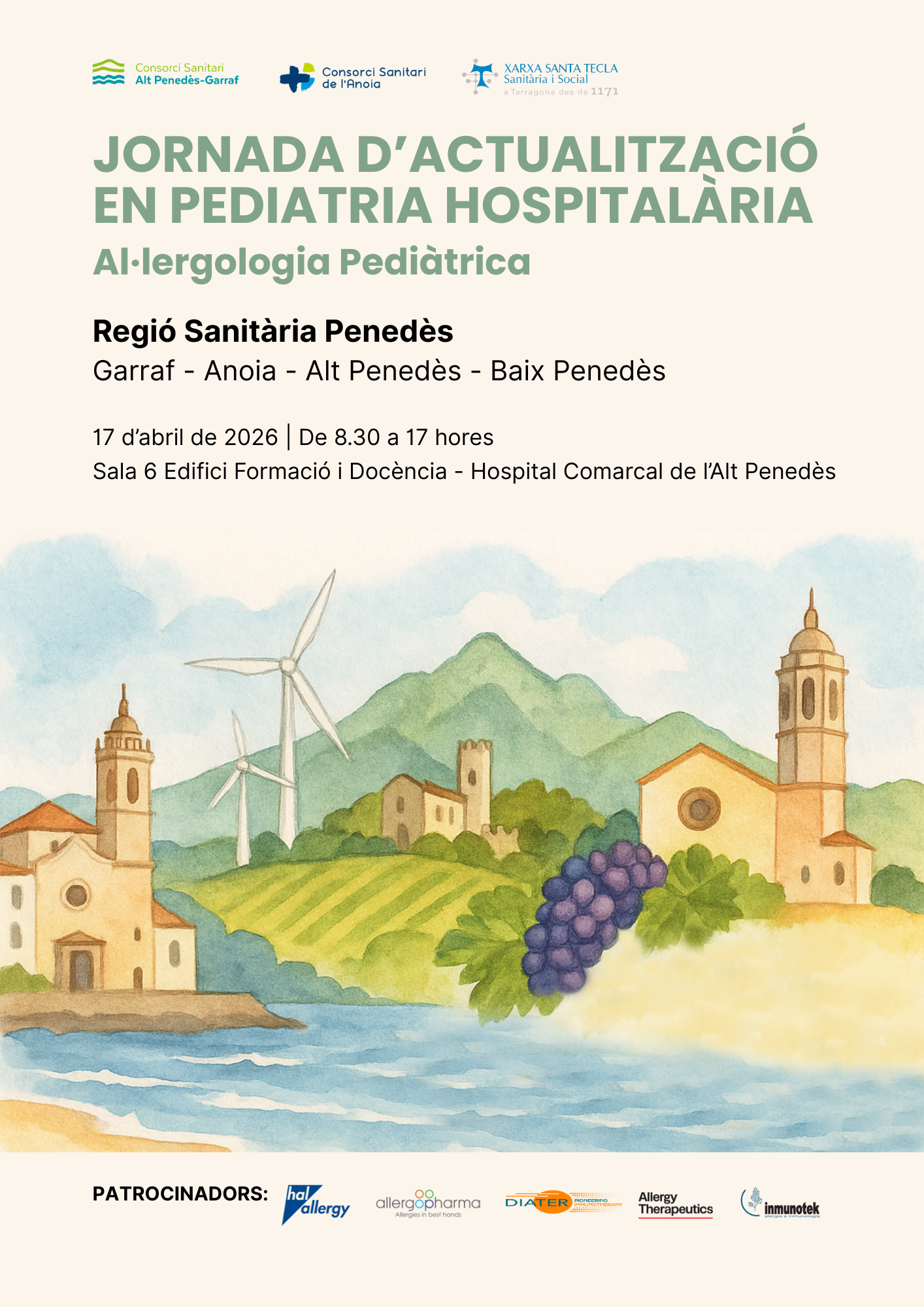 El Consorci Sanitari Alt Penedès-Garraf, el Consorci Sanitari de l'Anoia i la Xarxa Santa Tecla organitzen una Jornada d'actualització en Pediatria Hospitalària, enguany centrada en l'al·lergologia pediàtrica.