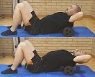 Estirats sobre la màrfega amb cadera i genolls doblegats i peus en contacte al terra amb un foam col.locat a nivell dorsal. Posarem les mans creuades darrera el cap per subjectar-lo.