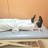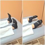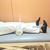 Estirats panxa amunt, col·loquem una tovallola sota el genoll. Pressionem la tovallola amb el genoll, a l’hora que la punta del peu mira amunt.