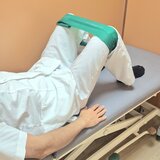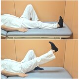 Estirats panxa amunt posem un llençol al peu i el subjectem amb les mans. Flexionem la cama direcció cap el gluti arrossegant-la pel llit amb l’ajuda del llençol i l’estirem lentament. Repetim l’exercici.