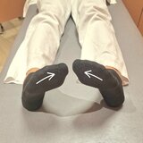 Estirats panxa amunt, fem moviments amb els peus portant les puntes dels dits cap avall i després cap amunt. Repetim l’exercici.