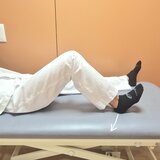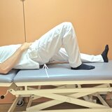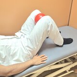 Estirats panxa amunt, amb la cama lesionada doblegada recolzant la planta del peu sobre el llit i l’altra estirada. Extenem el maluc aixecant la pelvis del llit. Mantenim 3-5 segons, descansem 5 segons i repetim l'exercici.