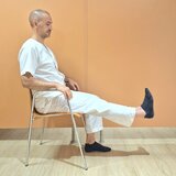 Asseguts, fem extensió de genoll alternativament amb els dits dels peus mirant amunt. Reptim l’exercici.