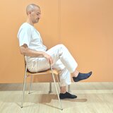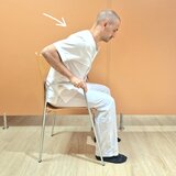 Asseguts, separem l’esquena del respatller de la butaca o cadira (flexionem el tronc endavant). Tornem a la posició inicial. Repetim l’exercici.